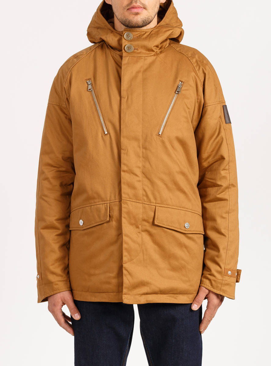 Мужская утепленная куртка, рассчитанная на холодную осень и зиму. Длина изделия до середины бедра. Куртка выполнена из 100% хлопка с водоотталкивающей пропиткой, имеет стеганную подкладку и утеплена синтепоном. Именная фурнитура. Кожаная отделка. В карманах флисовая подкладка.