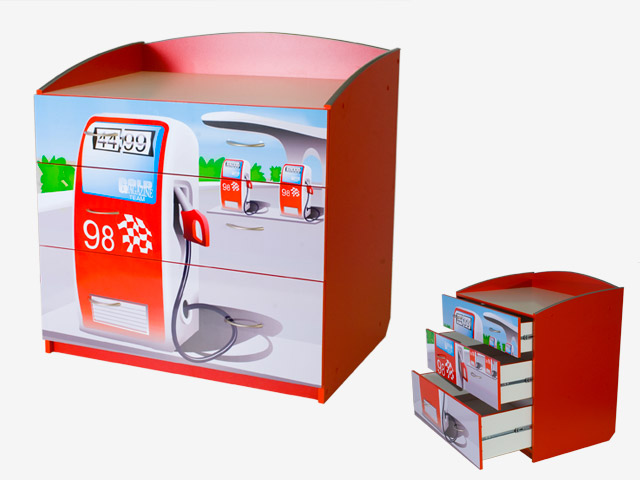 Удобный детский комод с интересным рисунком идеально подойдет к детской комнате. Такой комод лучше купить для мальчика в комплекте с детской кроватью-машинкой, вместе они разнообразят игровое пространство. Юный водитель всегда сможет <<заправить>> свой автомобиль, поэтому рекомендуем ознакомиться с ассортиментом из серий R1 и R2. Этот детский комод имеет вместительные ящики для вещей и игрушек, что позволяет поддерживать порядок в детской комнате.