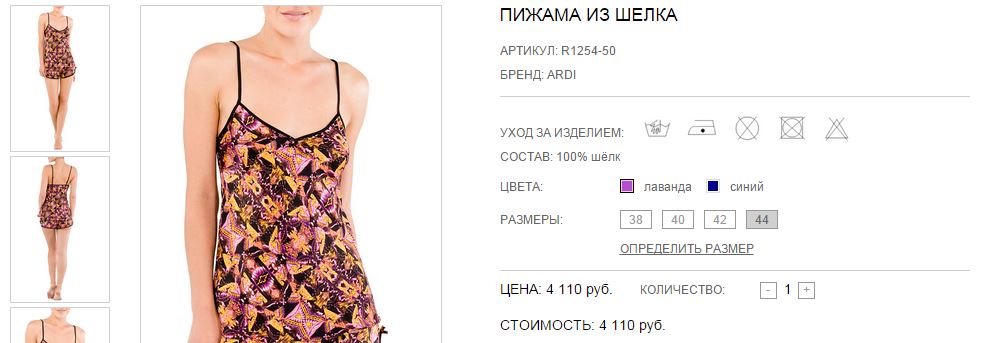 Пижама, состоящая из топа и шорт. Топ полуприлегающего силуэта выше уровня бёдер выполнен из натурального шёлка с дизайнерским фотопринтом. Вдоль верхнего края окантовка. Спереди V-образный вырез, украшенный бантиком. Тонкие регулирующиеся бретели. Сзади открытая прямая спинка. Короткие шорты выполнены из натурального шёлка. По талии на резинке. По низу окантовка. В боковых швах по низу маленькие закругленные разрезы с бантиками.