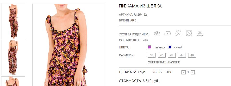 Пижама, состоящая из топа и брюк. Топ полуприлегающего силуэта до уровня бёдер выполнен из натурального шёлка с дизайнерским фотопринтом. Вдоль верхнего края окантовка. Тонкие регулирующиеся бретели с узкими рюшами - крылышками. Сзади открытая прямая спинка. Спереди на бретелях бантики. По низу отделочный кант и рюша. Брюки джлинные из шелка. Пояс на резинке.