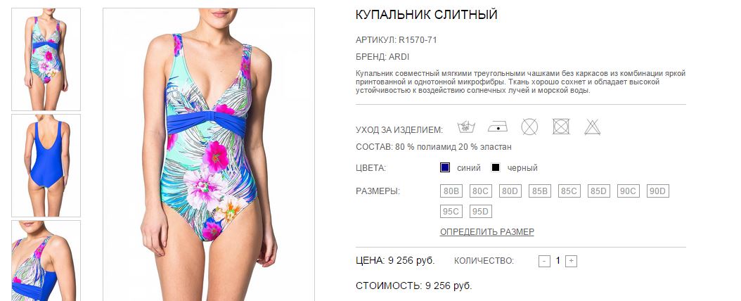Купальник совместный мягкими треугольными чашками без каркасов. Чашки со съемным тонким формованным вкладышем. Спереди под грудью декоративный пояс с драпировкой.