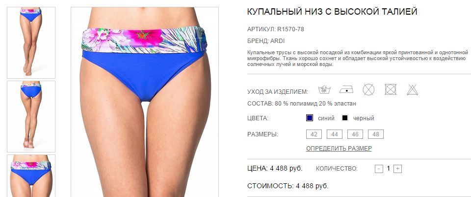 Купальные трусы с высокой посадкой. По верхнему края широкий отворачивающийся пояс, слегка присборенный по бокам.