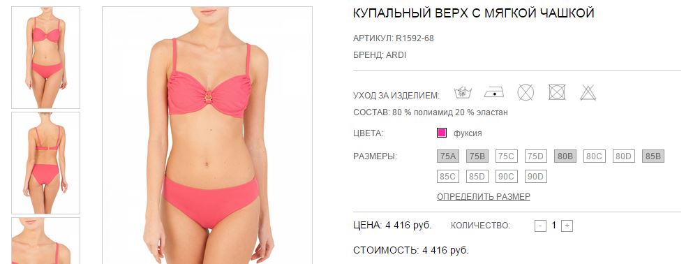 Купальный бюстгальтер с мягкой чашкой на каркасах.