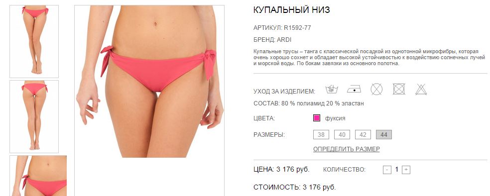 Купальные трусы - танга с классической посадкой. По бокам завязки из основного полотна.