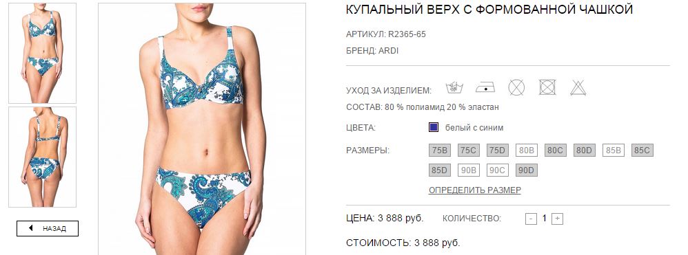 Купальный бюстгальтер с формованной чашкой на каркасах.