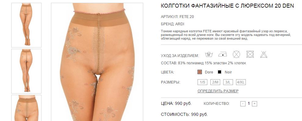 Тонкие колготки с красивым узором из люрекса по всей ноге. Однородные по всей длине, формованная стопа, плоские швы, хлопчатобумажная ластовица.