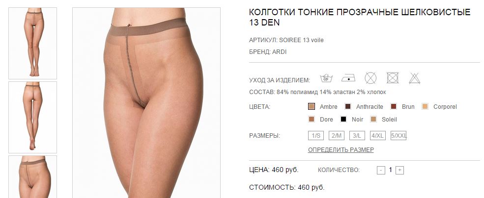 Прозрачные шелковистые тончайшие колготки с двойным оплетением эластановой нити, однородные по всей длине, с плоскими швами и хлопчатобумажной ластовицей, с усиленным мыском, с большой задней вставкой в размере XXL.