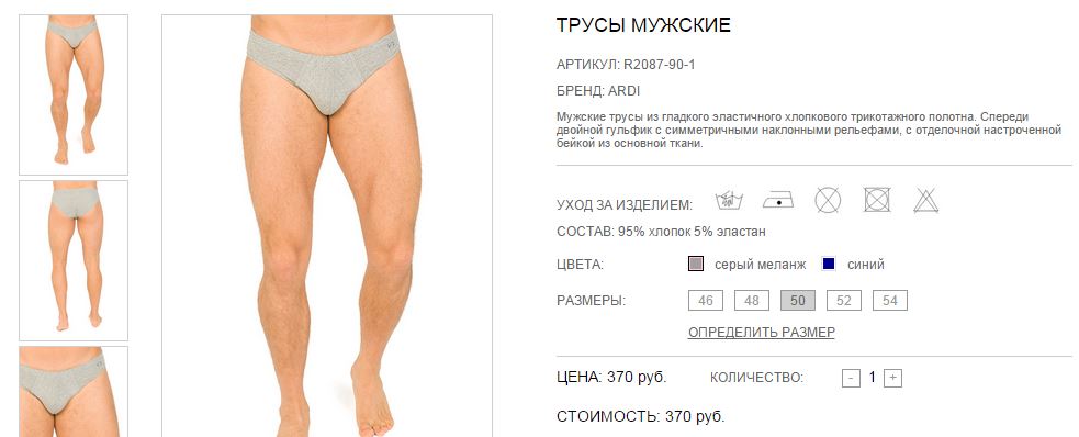Мужские трусы - слипы из хлопка. Спереди симметричные наклонные рельефы, подчеркнутые настроченной бейкой. Сбоку спереди аппликация в виде фирменной кошки ARDI, выполненной в технике "флок".