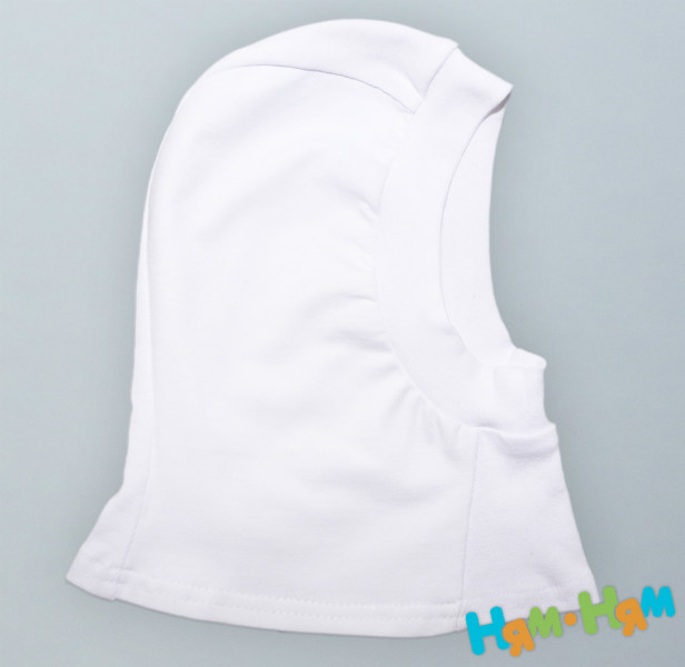 Длина по окружности лица по трикотажной резинке-32см без растяжения, в растянутом состоянии -43 см.
