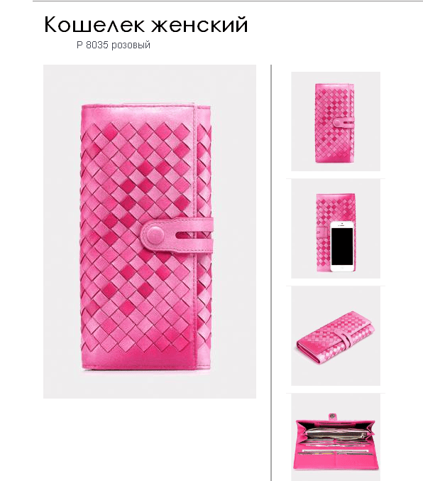 Описание: материал - плетеная натуральная кожа премиум ручной работы, металлическая молния, подкладка - полиэстер, закрывается на кнопку.