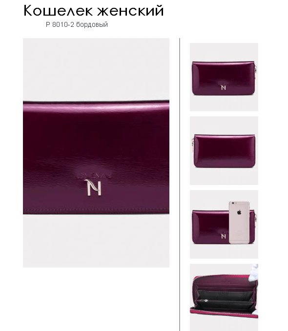 Описание: материал - глянцевая натуральная кожа премиум, металлическая молния, подкладка - полиэстер.