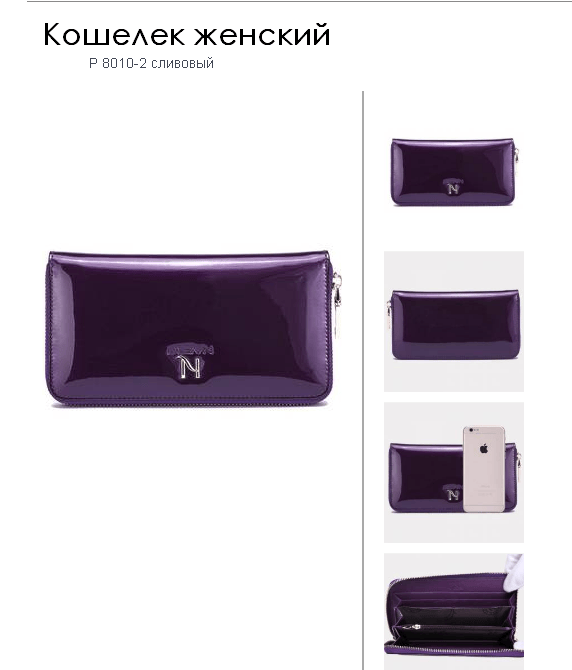 Описание: материал - глянцевая натуральная кожа премиум, металлическая молния, подкладка - полиэстер.