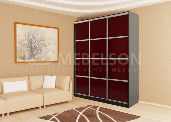 Фасады дверей выполнены из стекла с эмалевым покрытием глубокого <<бордового>>, спокойного <<кремового>> или насыщенного <<коричневого>> цвета. Зеркало безопасно, выполнено по технологии триплекс.
