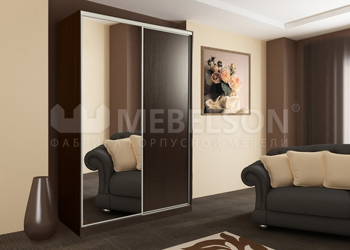 Фасады дверей выполнены из ЛДСП с зеркалом. Зеркало безопасно, выполнено по технологии триплекс.