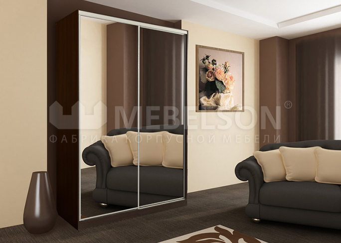 Двери-купе выполнены с рамочным стальным профилем. Шкаф-купе прекрасно подойдет в гостиную, спальню, детскую и прихожую.